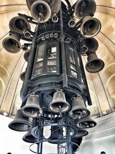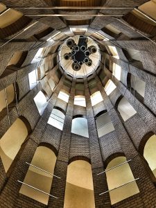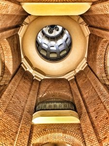 Vielleicht finde ich bei der Wiedereröffnung 2019 dann aber die Tür nach draußen. Als ich im letzten Jahr wirklich ganz oben unter einer gigantischen Glocke ankam, war ich überrascht. Alles verglast und so manches runde Fenster bot wegen erhöhtem Verschmutzungsgrad keine schönen Aussichten auf ein brillantes Foto. Wieder unten angekommen schlenderten wir hinüber zum Deutschen Dom. Und dann kam die Erkenntnis: es muss einen Weg ins Freie geben, den wir verpasst oder einfach nicht gesehen haben. Denn hinter der runden Balustrade unterhalb der Kuppel waren ganz deutlich Menschen zu erkennen.